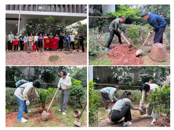 为深入学习贯彻习近平生态文明思想,助力美丽校园建设,3月22日,在总务后勤部的大力支持下,法社学院组织师生在莞城校区图书信息中心大楼下开展“绿美莞邑,党员先行”主题党日活动。学院领导、教职工党员、学生党员代表等参加了活动。