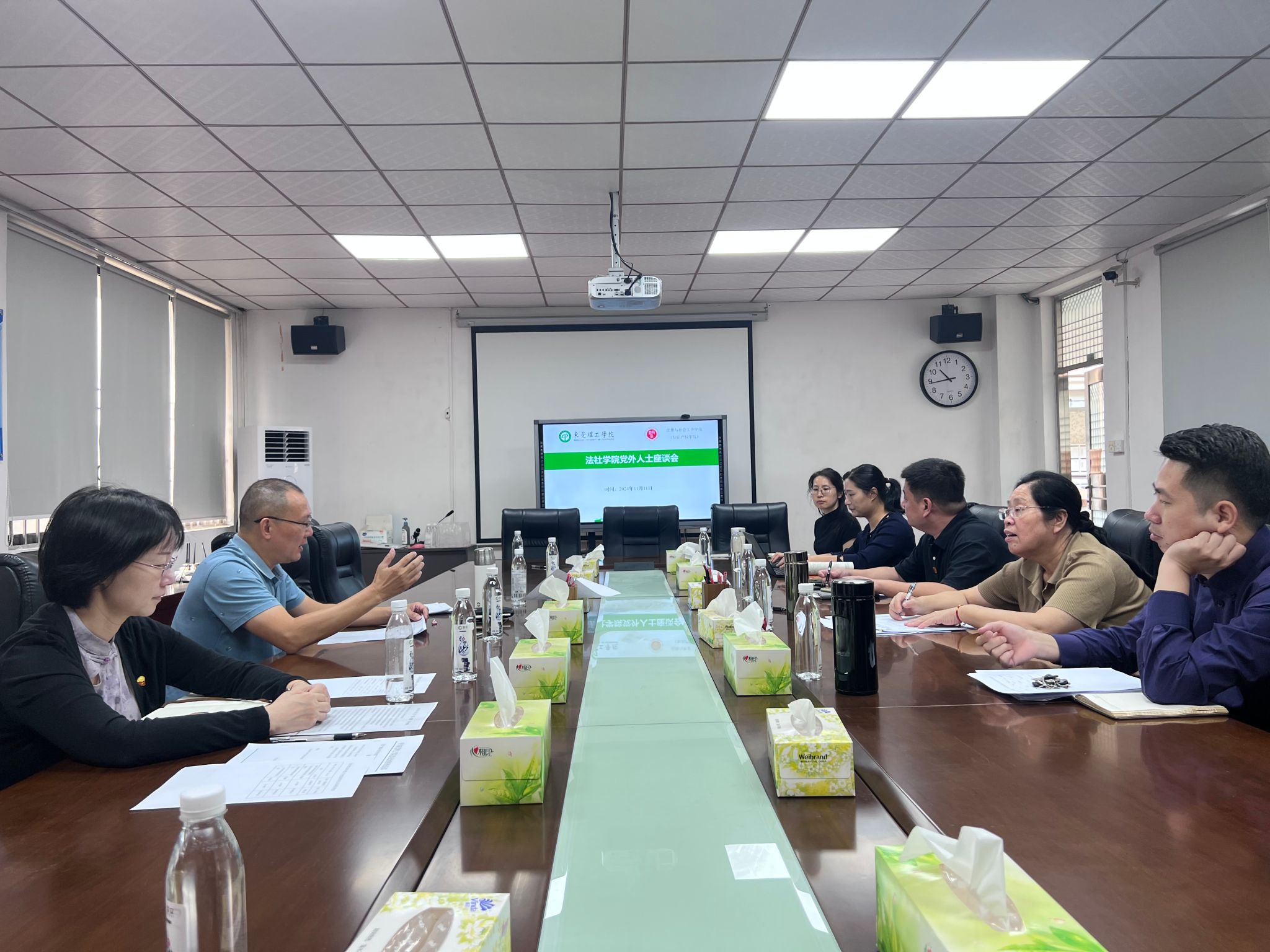 11月11日,法社学院召开党外人士座谈会,听取大家对学院党委工作的意见和建议。学院党外人士郑玉敏、蔡贵峰、罗兆婧、教师代表张子庄以及学院领导梁意红、黄俊辉等参加了会议。会议由学院党委书记杜应发主持。