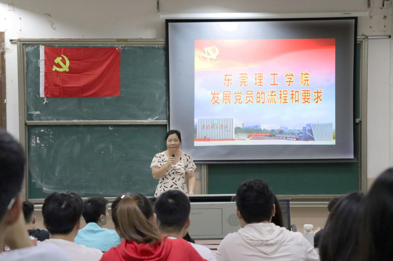 (知识产权学院)分党校第三十三期入党培训班第三次党课于莞城校区的模拟法庭6#1开讲,法社学院学生第一党支部书记钟丽华应邀主讲主题为“发展党员的流程和要求”的党课,全体33期入党积极分子到堂听讲。