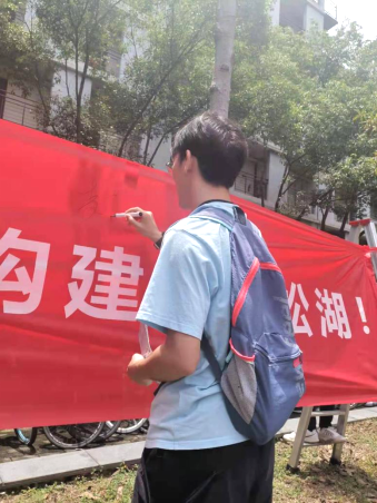本次活动由“小礼品+宣传”组成。礼品由东莞知识产权研究会提供,同学们主要的任务是派发“尊重原创,保护版权,构建创新松湖”的宣传手册,并与到场的同学们讲解“什么是知识产权”、“保护版权的重要性”、“尊重原创的重要意义”等等。此外,活动还组织了同学们在宣传横幅上签名的环节,旨在通过这个举动强化同学们对“保护知识产权”这个立场的认同,潜意识里做出符合这个观点、立场的行为。