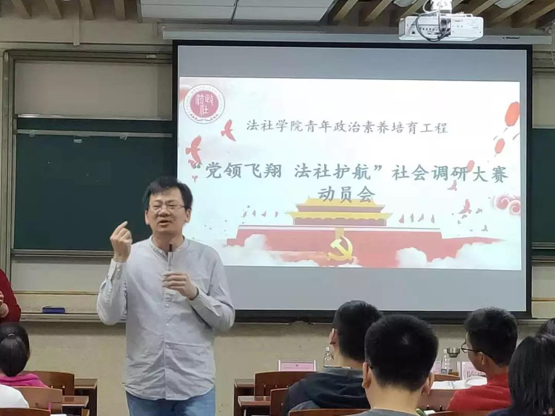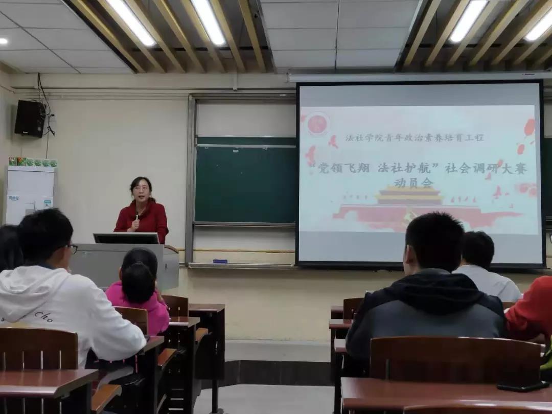 为更好地推进法社青年政治素养培育工程系列主题活动之“党领飞翔,法社护航”社会调研大赛的开展,2019年12月30日晚,社会调研比赛组委会在3309室召开了大赛动员会。法社学院朱晓红老师,法律系胡庆乐老师出席了本次会议,各参赛队伍代表积极参会。