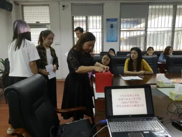 (知识产权学院)学生支部委员会党员大会的批复》,接着介绍候选人预备人选简况,与会党员讨论表决通过了选举办法、委员候选人预备人选以及监票人人选。随后有选举权的党员差额投票选举产生出新一届委员,分别是钟丽华、刘海波、邹欢、邱可荣、刘展希(以得票数排序)。