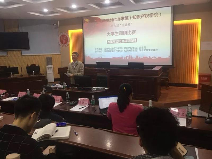 在模拟法庭召开主题为“改革再出发,奋斗正当时”的大学生调研比赛启动大会,会议由专职组织员陈少典老师主持,潘荣新书记、丘永辉副书记、朱晓红副院长、各系负责人、辅导员和参赛代表参加会议。