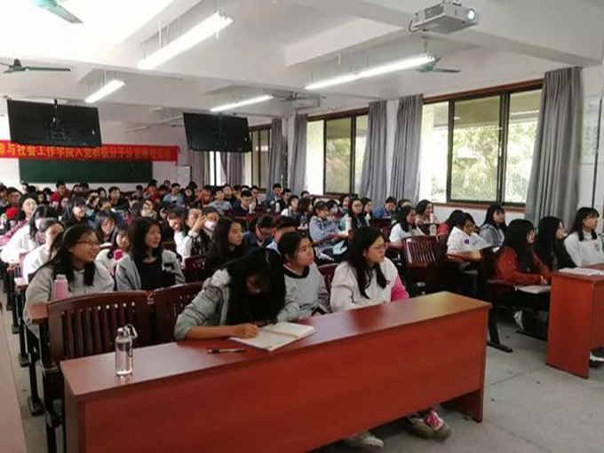 党总支书记潘荣新老师。应到的积极分子100人,实到95人。