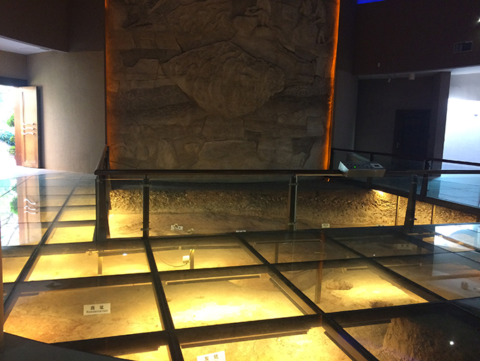 博物馆于2007年6月正式建成并对外免费开放,展馆共分三层,由时光隧道、遗址展厅、蚝岗文物展厅、三江彩陶展厅、临时展厅、互动展厅等组成。