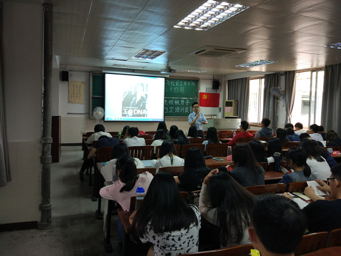 分党校第二十四期第四次入党积极分子培训课在莞城校区课室1408顺利举行。本次培训课的主讲人是校友罗志凯师兄。应到积极分子89人,实到77人。