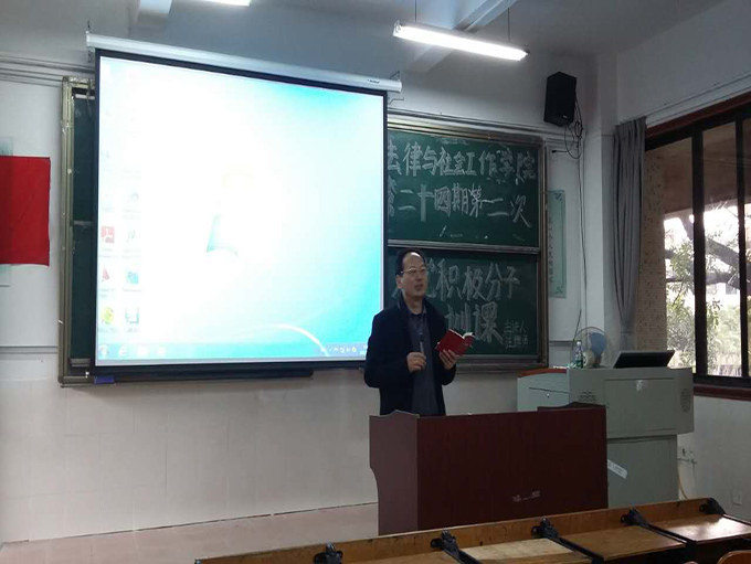 第二十四期第二次入党积极分子培训课圆满结束。法社学院党总支希望同学们能够从这次培训课上有所收获,端正入党动机,了解党章,为成为一名合格的党员而努力。