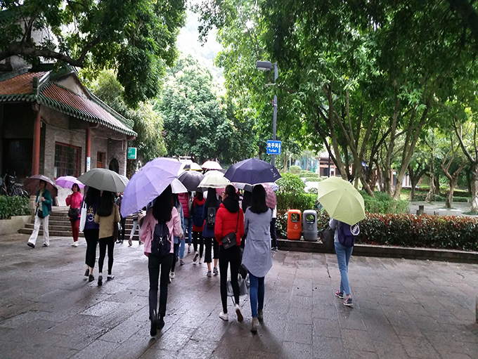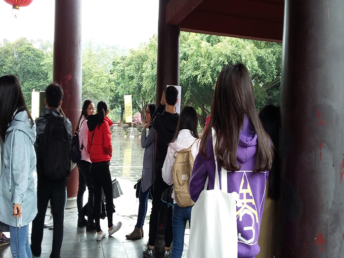 在积极分子领到相应的手套和垃圾袋后,大家开始爬往山顶,活动正式开始。虽然天气稍有小雨,但积极分子们的热情不但没有因此消退半分,反而秉乘着不畏艰难的长征精神,继续冒雨前行。沿途中大家有说有笑,气氛十分融洽,并随手捡起小路两旁的垃圾。从最小的事出发,做着最真诚的事,积极分子们的身影成为黄旗山一道亮丽的风景线。到达山顶后,党建办成员分别向积极分子们讲述黄旗山的历史以及红军长征的故事,细雨中,同学们积极回应并就某些问题提出自己的见解。