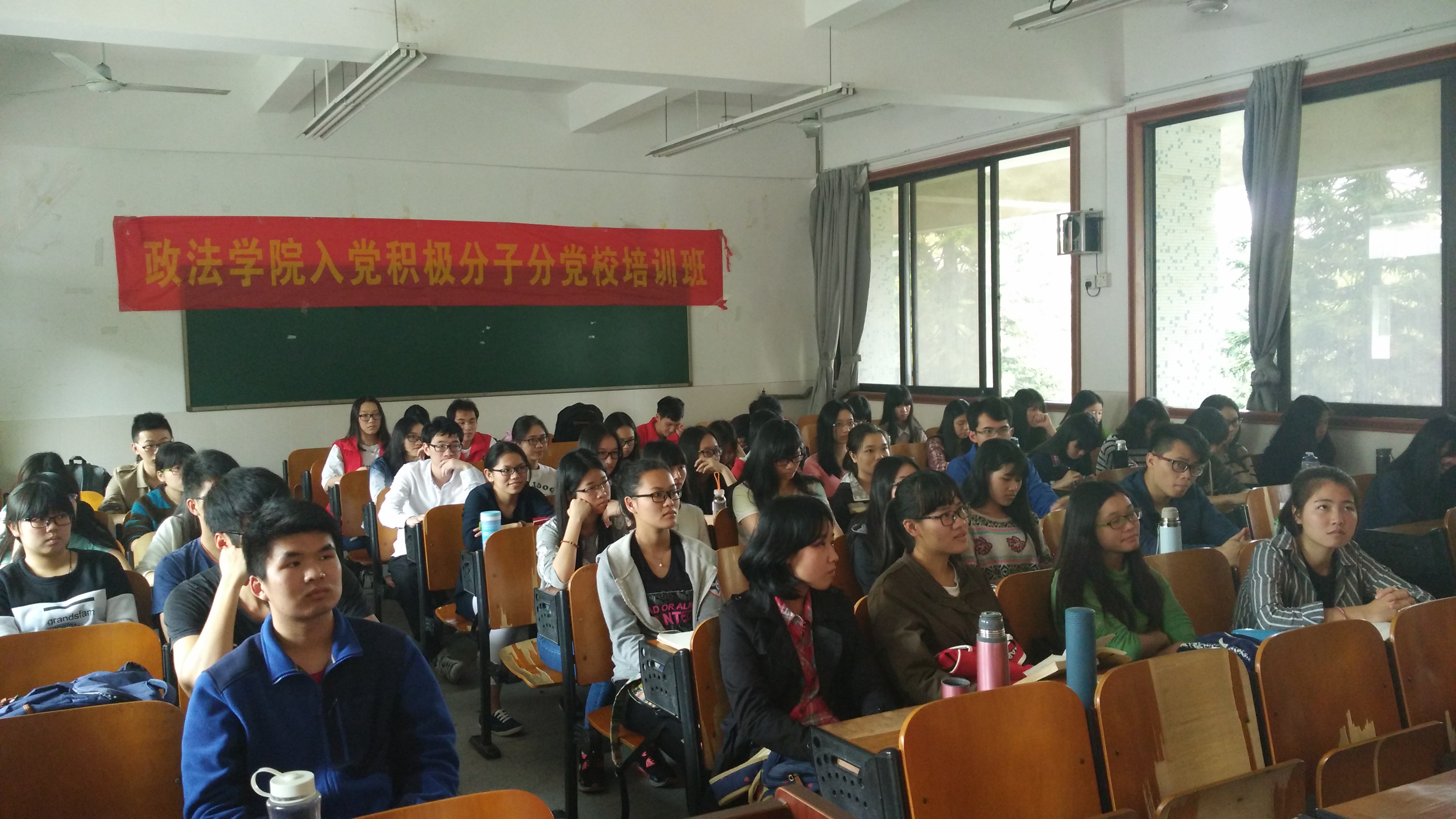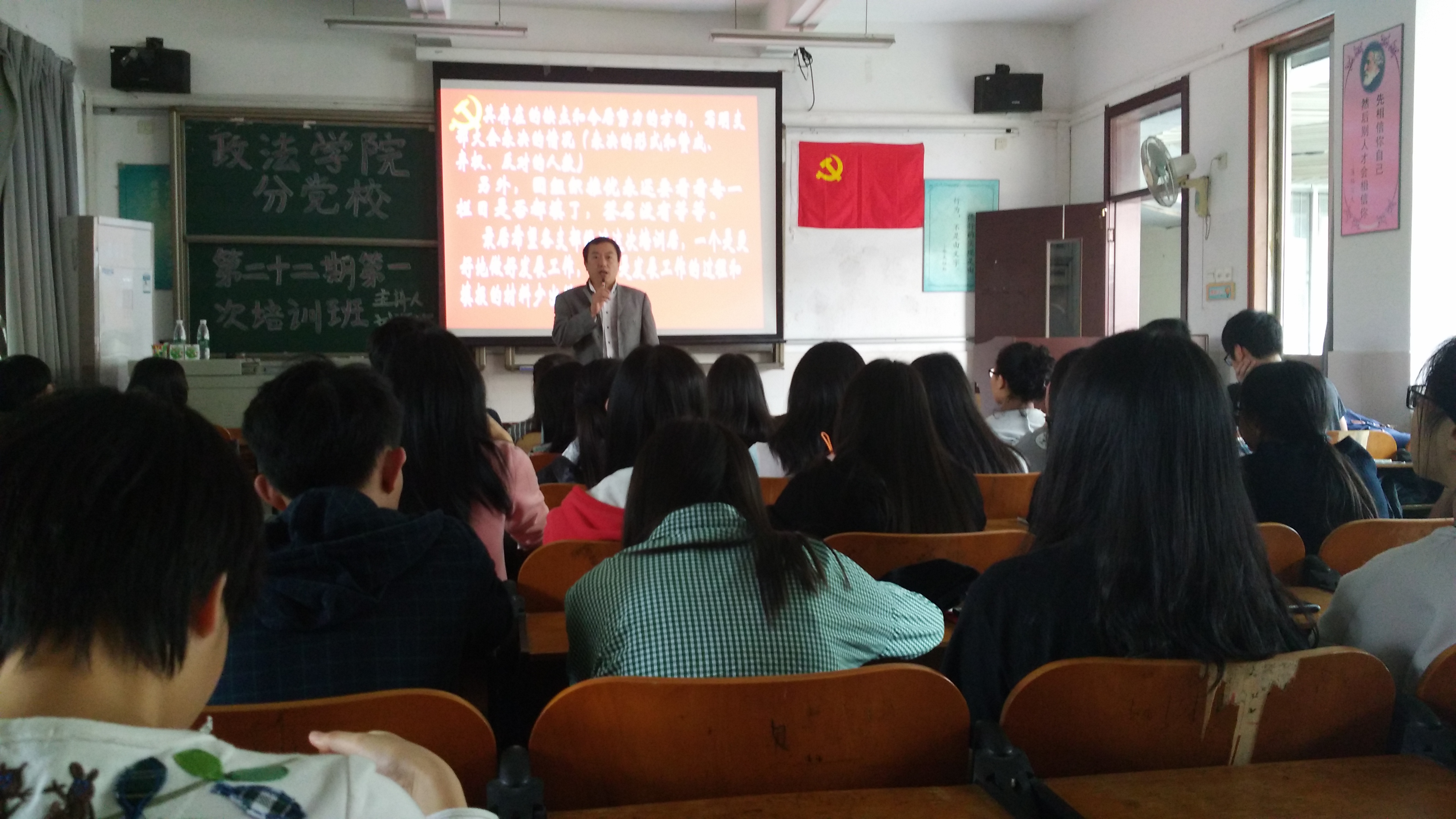 3月31日下午2:30,政法学院分党校莞城校区第二十二期入党积极分子第一次培训课于课室1308举行。本次培训课邀请到刘海波老师授课。应到积极分子60人,实到54人。