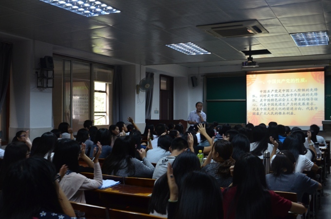 10月29日下午3:00,政法学院分党校莞城校区第二十一期入党积极分子第三次培训课于课室3407举行。本次培训课邀请到思政部李洪君教授授课。应到入党积极分子84人,实到76人,另有53名班委参加。