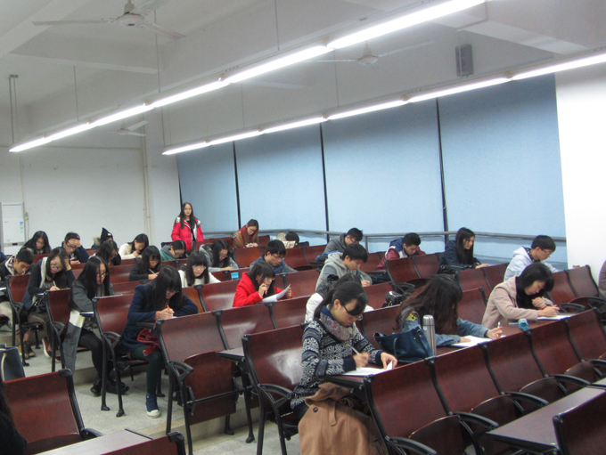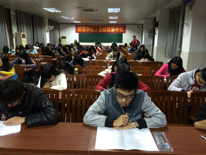 本次分党校考试形式还是与往常一样,采用闭卷。试题有单项选择题、多项选择题、判断题三种题型。考试目的主要是考察积极分子们通过三次分党校入党积极分子培训课与日常学习生活对党的章程以及其他关于党的知识的了解程度。开考时间一到,两校区的党建办工作人员先宣读考试注意事项,然后分发试卷。考试过程中,同学们埋头认真做试题,争取交上一份令自己、令党满意的答卷。两个考场的纪律都很好,无违纪现象。