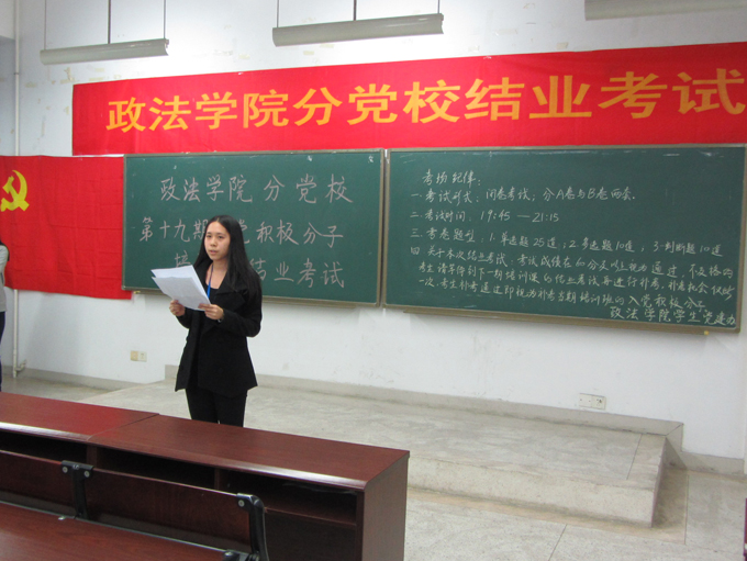 晚上9点15分,政法学院分党校第十九期入党积极分子结业考试正式落下帷幕。同学们纷纷表示自己通过这一期的培训课学到了很多关于党的知识与党的精神财富,收益颇丰,同时表示一定要加倍努力,争取早日加入中国共产党,做一个对社会有担当的人。