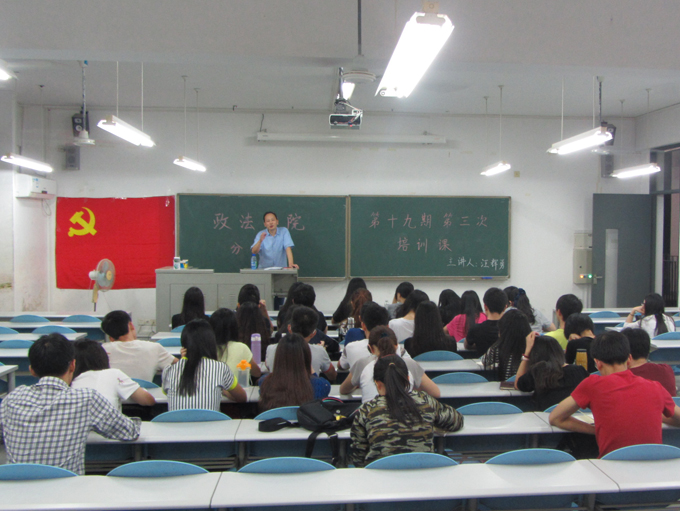 11月30日晚上7点整,政法学院分党校第十九期第三次入党积极分子培训课于松山湖校区教学楼6D-202举行。本次培训课由汪辉勇老师主讲,应到入党积极分子人数为39人,实到人数为34人。