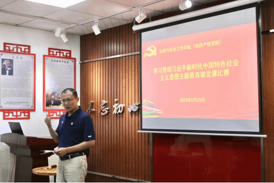 (知识产权学院)举办了学习贯彻习近平新时代中国特色社会主义思想主题教育微党课比赛,学院党委书记杜应发和学生党支部书记、学生党员代表等参加了活动。