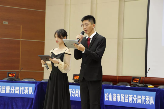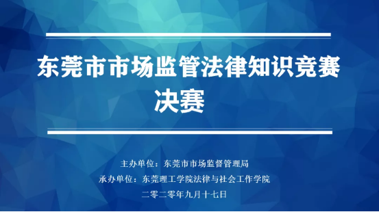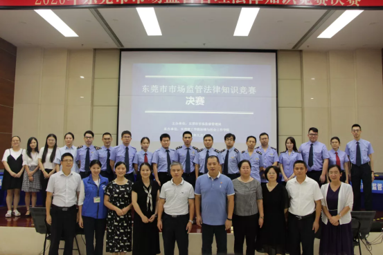 为促进全市市场监管系统尊法、学法、守法、用法,受东莞市市场监督管理局委托,法社学院发挥专业优势,从今年3月份开始筹备该比赛,历时半年,进入总决赛的是来自高埗、塘厦、松山湖、凤岗、虎门和横沥六个分局参赛队伍,通过初赛、网络答题等考验,最终从全市34个镇街(园区)的市场监管分局100名代表参加中脱颖而出。决赛内容涵盖了竞赛内容涵盖宪法、民法典、行政处罚法、行政强制法、产品质量法、食品安全法、药品管理法等涉及市场监管的主要法律法规,罗兆婧、吉海荣老师为本次竞赛题目提供了专业指导。