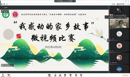 (知识产权学院)组织举办“扎根专业课程,讲好思政故事”之“我感动的家乡故事”微视频比赛,法社学院副院长朱晓红、学公办主任钟丽华、专职组织员黄阳辉、社工系副主任张雪、辅导员黄海娜应邀出席此次活动。
