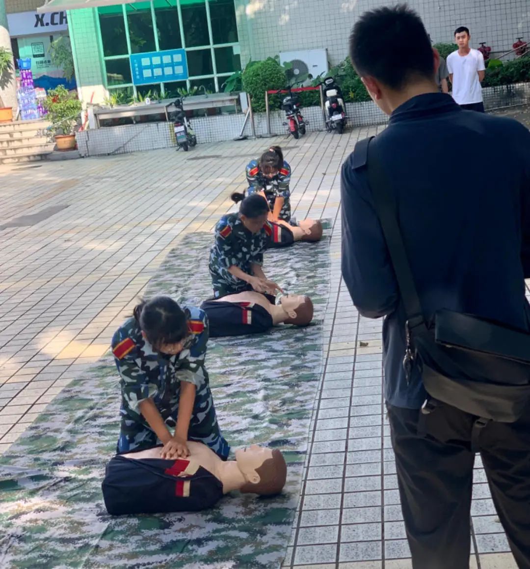 2023级新生谭皓丹、简妙淑、栗燕鸿代表13营29连参加学校组织的新生军训心肺复苏比赛并取得第一名的好成绩。