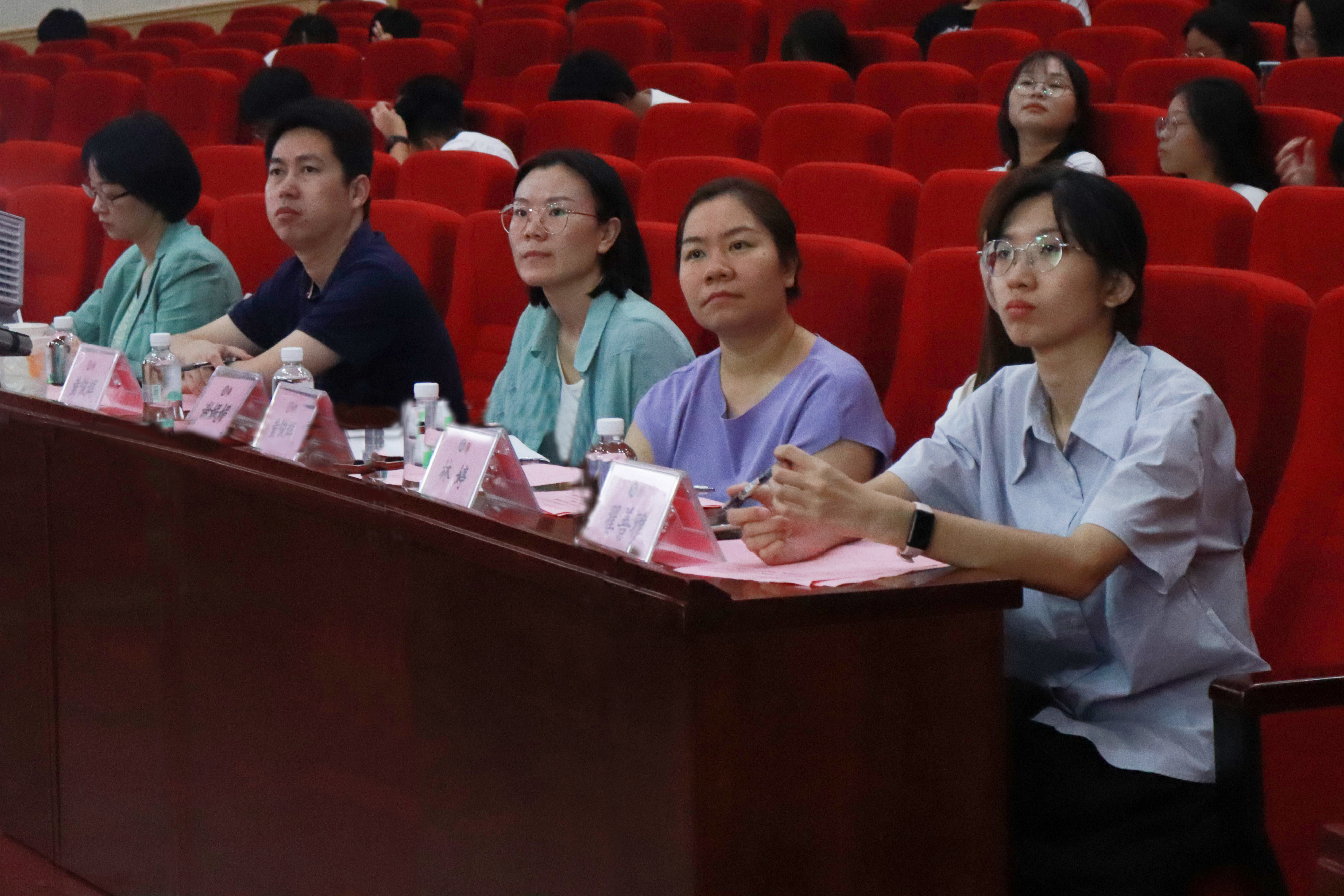 (知识产权学院)党委副书记梁意红、副院长黄俊辉、团委书记钟丽华、团委副书记邹欢、辅导员谢媚媚、班主任龚红兵、庄瑞银、党曦等老师和团委学生常务副书记翟善雅、学生会执行主席林婷等学生代表。2023级全体学生、参评班级全体学生、2021级和2022级各班级代表参加会议。