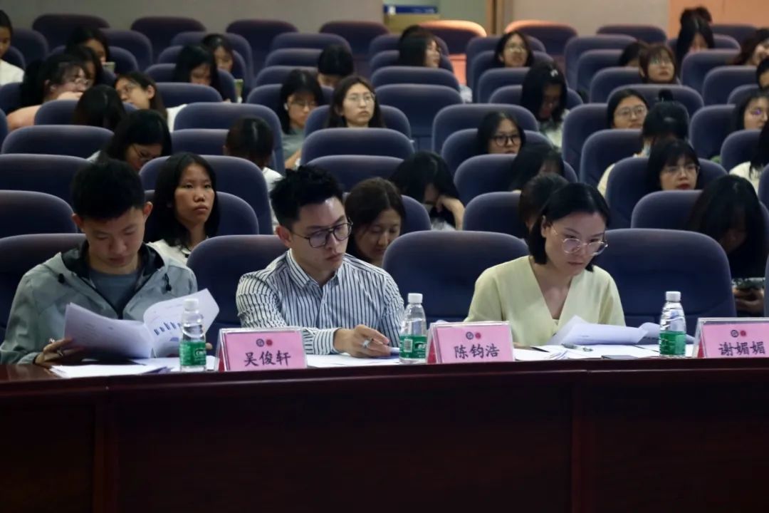 陈钧浩先生作为评委代表对本次大赛进行了点评,他以过来人的身份从自身的职业规划、个人经历有关方面向大家传授经验。陈先生指出,目标清晰的大学职业规划是大学生步入社会的重要前提,职业是人生必走的一个阶段,同学们应该主动向行业内从业者了解职业环境,学习职业技能,不断提高实践能力。最后,陈先生将“大而落地”四个字送给在场的法社学子们,鼓励大家在大学期间大胆尝试、勇于探索、积极实践,并衷心祝愿选手们在职业规划大赛取得理想成绩。