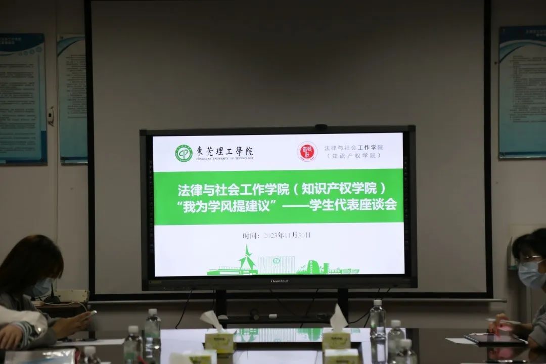 在莞城校区5201会议室开展“我为学风提建议”学生代表座谈会。党委副书记梁意红、副院长黄俊辉、学工办主任钟丽华、辅导员邹欢、黄海娜、刘海波等出席本次座谈会。