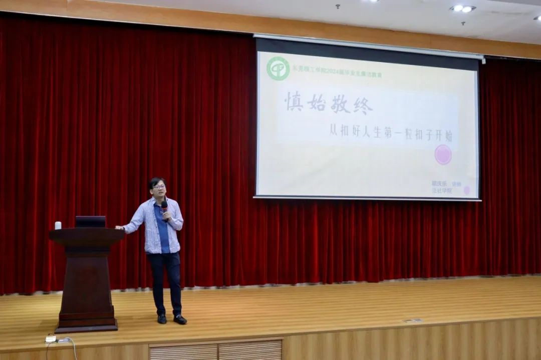 胡庆乐老师从慎始与敬终展开讲述,结合具体案例,生动形象展示了“终身问责,反腐反贪”的意义,为毕业生敲响离校廉洁最后一钟。
