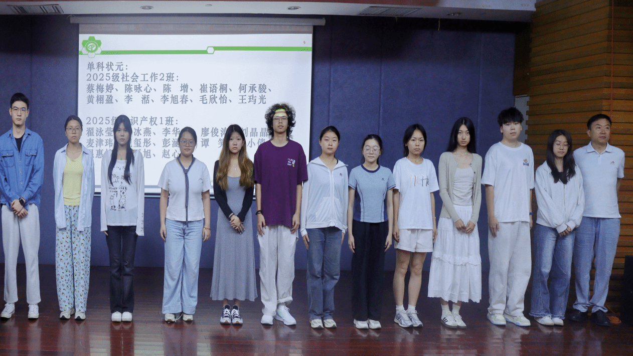 专业辅导员、班主任、助理班主任与2025级第一学期考试单科状元合影。