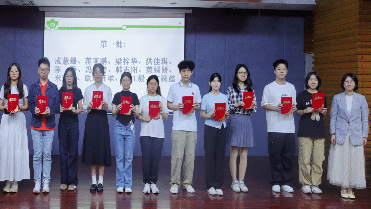 梁意红、罗兆婧与2025级第一学期考试总分状元合影。