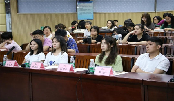 会议伊始,彭丽丽同学首先分享自己的考研经验。她根据考研的不同阶段,将分享内容分为择校、初试、复试等部分,向在场的同学阐述了自己从备战到临考期间详尽的准备工作,还介绍了时间安排方面的一些技巧。随后,郭雪美同学分享了自己的学习安排。她根据考试科目分成政治、英语和专业课三大部分;并且从时间安排、复习方法、备考用书到选择老师进行了全面总结,分享给在座的同学。除此之外,叶福怡同学还给同学们的日常学习提供了许多建议,诸如利用APP、网课等工具加强基础,以及考试前后的心态调整以及学习节奏的掌控。接着,张澄轩同学分享了自己大学生活中从最初成绩不佳到实现“逆袭”的经历,总结了自己发生改变的原因和心态变化;考试具体内容方面,强调了英语单词背诵和政治时政这两部分的重要性。