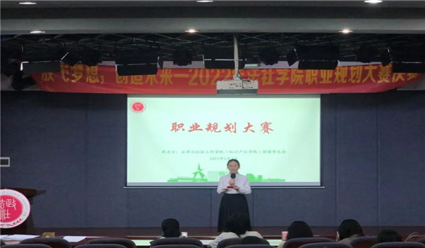 于2022年6月9日晚7:30于莞城校区小剧场举行大学生职业生涯规划大赛,法社团委、学生会团委常务副书记李嘉怡、法社团委、学生会学生会主席陈丹妮、2021年法社学院职业规划大赛一等奖钟晓媚、2021年法社学院职业规划大赛二等奖殷苑菁作为评委出席本次比赛。
