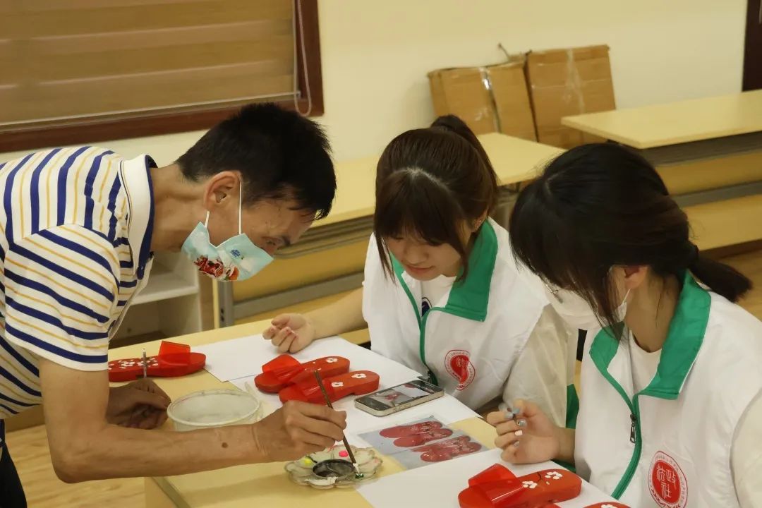 于莞城校区莞思活动室开展“体验红漆描花木屐,传播中华传统技艺”活动。此次活动特邀请东莞市非物质文化遗产项目代表性传承人梁锦泉老师现场指导同学们进行“红漆描花传统木屐制作技艺”体验活动。