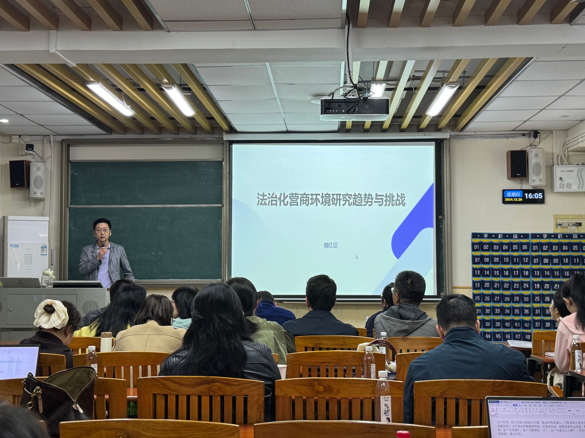 魏红征老师赴华南理工大学访学期间,深度研究法治化营商环境相关领域,并参与相关前沿课题研讨。汇报会上,他详述如何借鉴华工的科研及教研模式,将其融入科研与教学,提升专业实践能力,为学院法学与知识产权专业教学创新提供新思路。