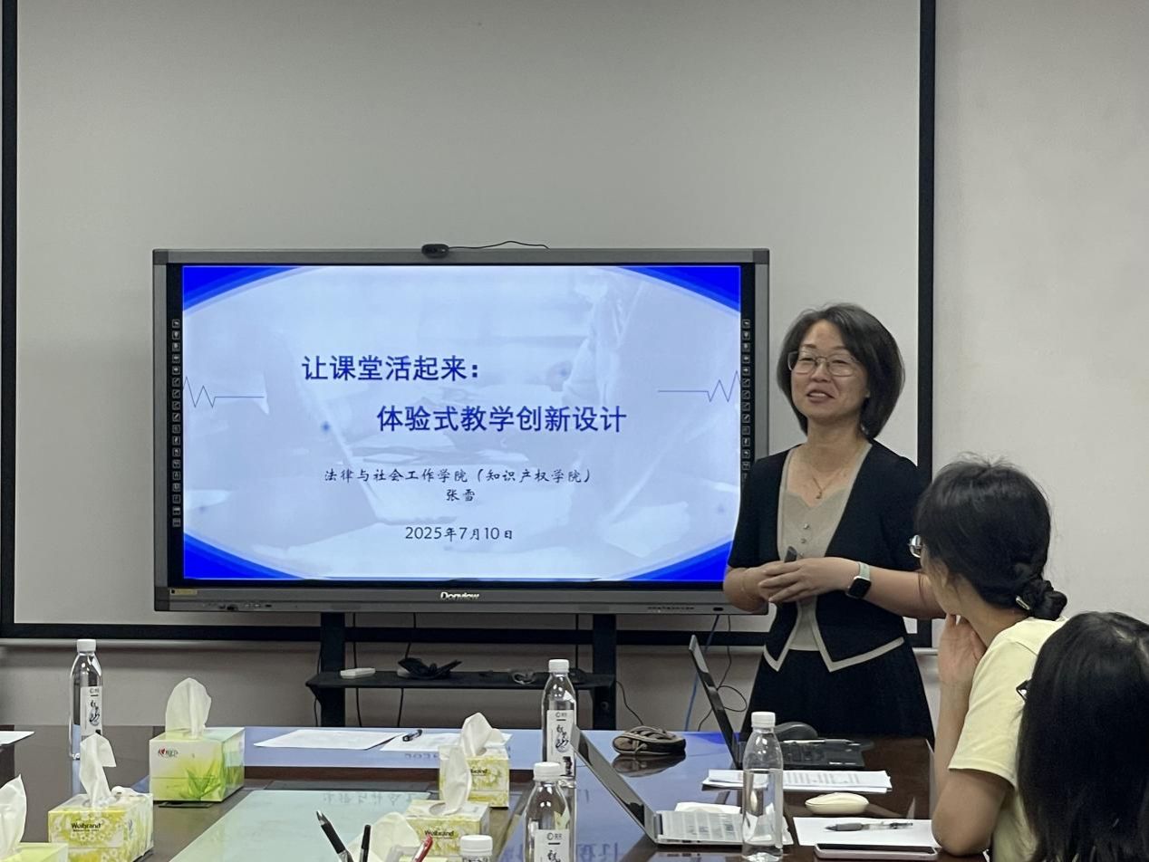 在经验分享环节,张雪老师以 “让课堂活起来:体验式教学创新设计” 为主题,作了精彩的第四期教学工作坊报告。张老师从“五指山”的互动环节展开,结合自身丰富的教学实践,分享了如何将体验式学习理念融入社会工作专业课程设计的思路与方法。她通过生动的案例展示了如何运用情景模拟、角色扮演、项目驱动、互动研讨等多种形式,有效激发学生学习兴趣与主动性,提升课堂参与度和教学效果。张老师的分享内容详实、富有启发性,为在场教师创新教学模式、打造活力课堂提供了宝贵的参考。参会老师们主动参与交流,提出自己的疑问和困惑,并积极讨论。