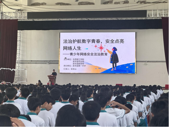为深入推进法治教育进校园,提升青少年网络安全法治素养。2025年9月29日,法社学院赴韶关市新丰县第一中学,与该县司法局、县教育局联合举办一场题为“法治护航数字青春,安全点亮网络人生”的青少年网络安全法治教育专题讲座,现场反响热烈。