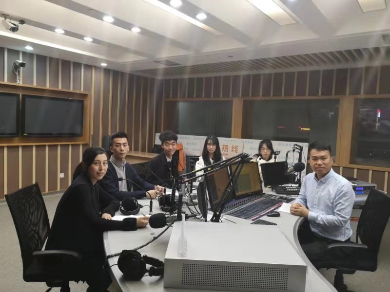 法社学院安之楠老师带领四名学生,一同前往东莞市广播电视中心,参加空中普法基地--东莞电台阳光1008《与法同行》的播出,与主播江晓共同讨论此案。