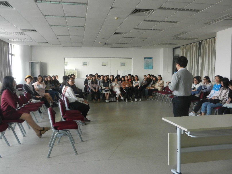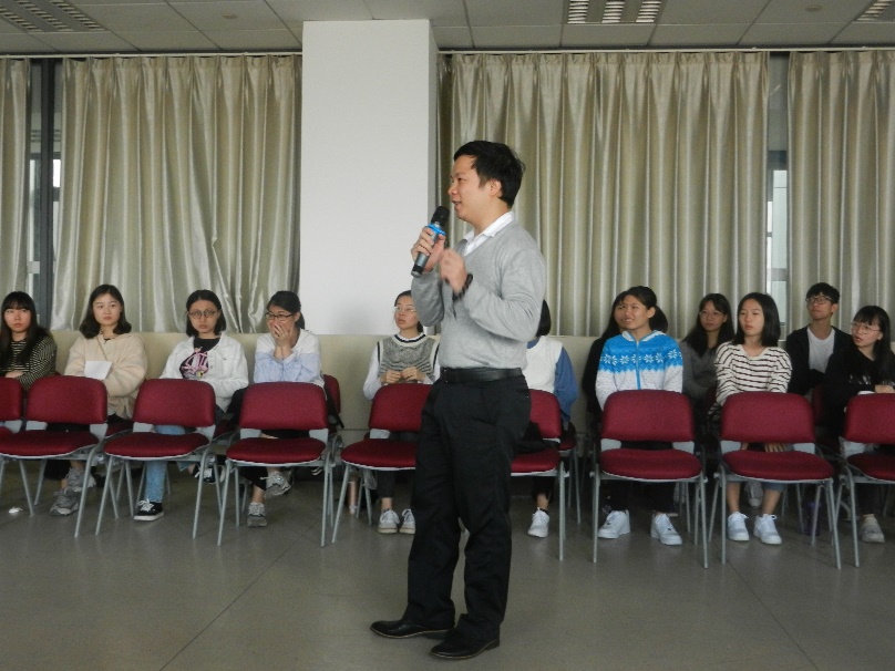 11月26日下午四点半,在图书馆十三楼的社工实验室,社工周小明向我们分享了小组工作实务经验。