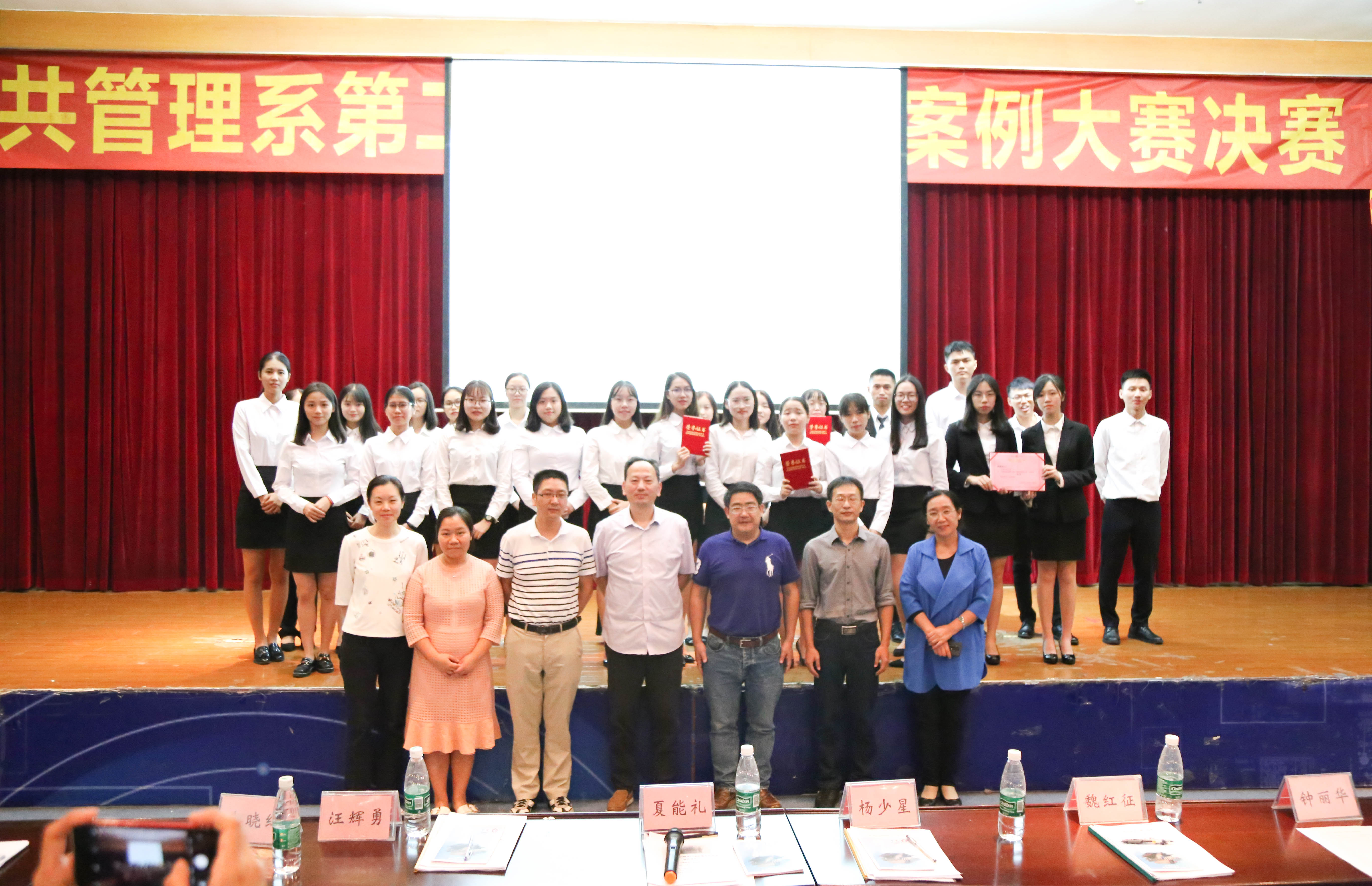 第二届公共管理案例大赛决赛在莞城校区学术报告厅举行。出席本次比赛的评委及嘉宾为:副院长夏能礼老师,公共管理系主任杨少星老师,公共管理系副主任魏红征老师,公共管理系教师代表汪辉勇老师、朱晓红老师、张麟老师,学工办主任钟丽华老师等。