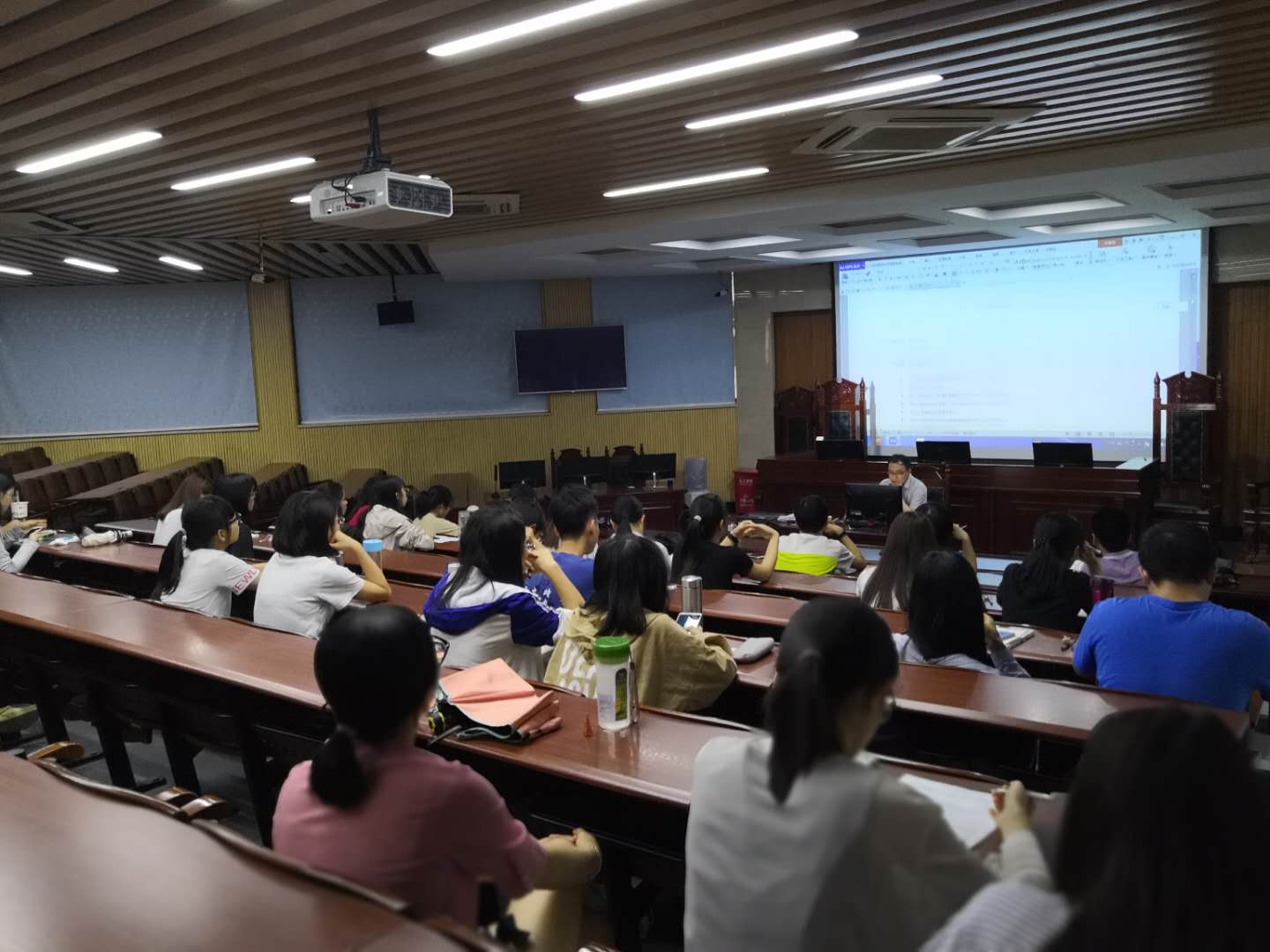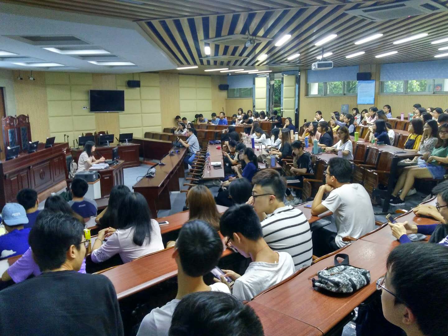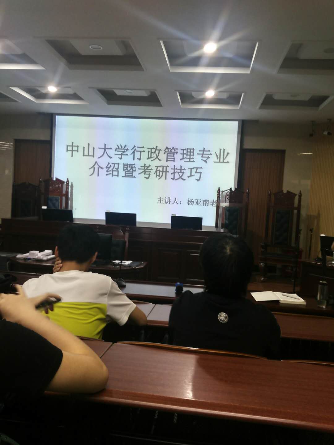 莞城校区模拟法庭举行,邀请了法社学院杨亚南老师和2014级行政管理3班的陈绚师姐作为主讲嘉宾,法社学院魏红征老师也出席了活动,行政管理专业100多名学生参加了本次活动。