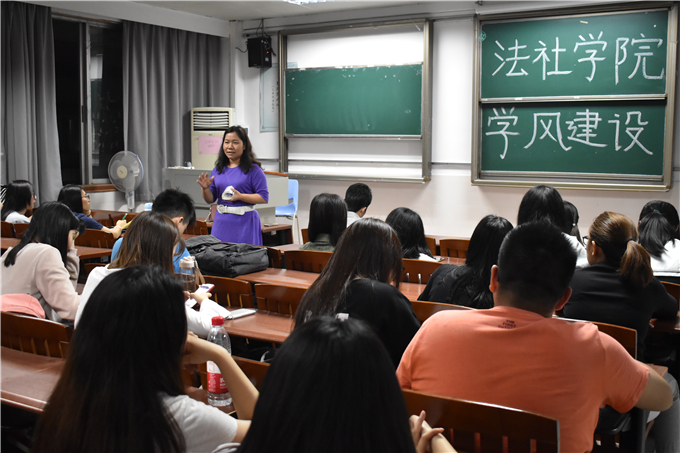 在学风建设方面存在的薄弱之处。他提出,各班学委要发挥班干部的积极作用,督促同学们严格遵守学院考勤的规章制度。钟丽华老师进一步讲述了课堂出勤的重要性以及违规违纪的严重性,指出了目前存在的晚归问题,提醒同学们为了自身的安全以及宿舍管理,自觉遵守宿舍的管理有关规定。同时,为了进一步加强学风建设,邹欢老师向同学们提出了新的要求,要求学生干部与班级干部互相协助共同促进学院的学风建设,营造优良学风氛围。