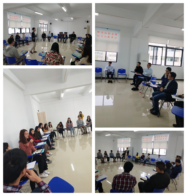 总结会上,实习生们依次发言,认真总结了自己在这一个半月实习时间里的工作成果和心得体会,提出了在实习工作中遇到和发现的问题,并对中心和学院提供的这次实习机会表示了真挚的感谢。同时,他们的实践指导老师对实习生的工作能力和工作表现给予了充分的肯定,公共管理系系主任杨少星老师也认为同学们进步很大,希望他们再接再厉,他还表示希望学院和横沥镇的校地合作实践能够有更加深入的发展。最后,吴锦成主任对实习生的工作表示了肯定,对同学们提出的问题进行了回应,他希望同学们认真完成实习调研报告,对中心的工作提出更多的意见和建议。