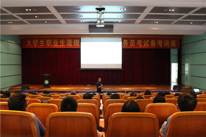 为加强大三大四同学对公务员考试的了解,拉高备考水平,提高考试能力,10月19日下午三点,法社学院公共管理系在学术报告厅举办了“大学生职业生涯规划 公务员考试备考”讲座。备考方面的专家黄昊老师他为在场的同学献上精彩而实用的一讲。