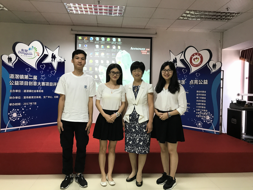 7月17日,由法社学院公共管理系与道滘镇政府合作的“筑梦道滘 点亮公益”——道滘镇第二届公益项目创意大赛获选项目公示,法社学院公共管理系2015级行政管理专业学生谢仕红、沈婷、尹晓君、庞思就四位学生组成的“摄·时光”团队申报的“定格幸福,留存记忆”——道滘镇老年人公益留影计划公益项目成功入选20个优秀项目之一,并获得道滘镇政府给与的项目奖励扶持资金2万元,用于该项目一年的运作经费。