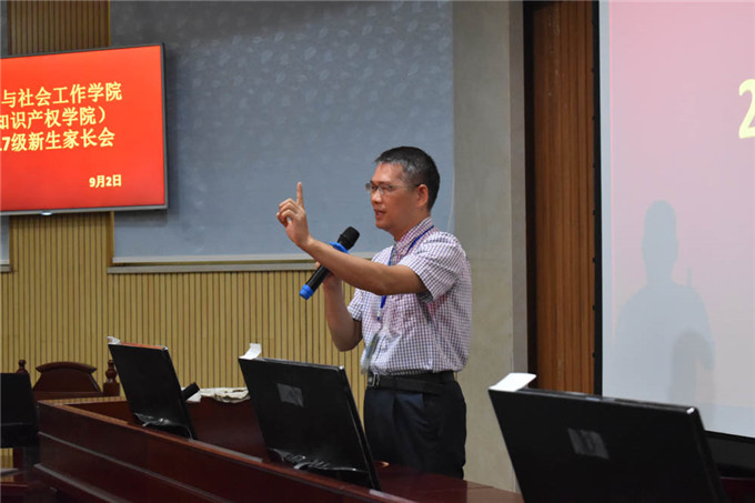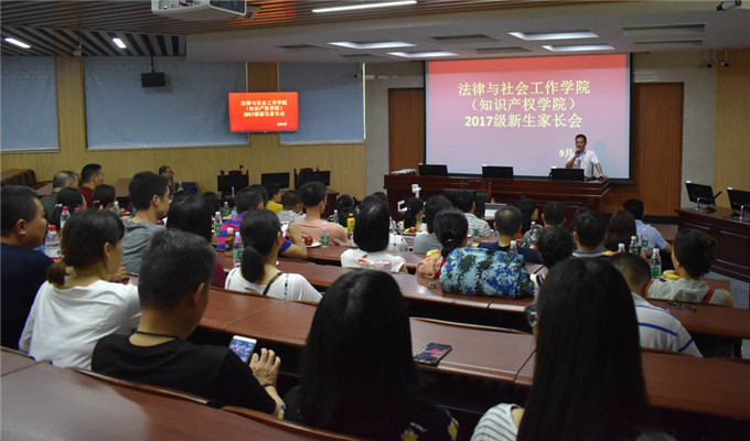 在6#2召开本院2017级新生家长会。出席本次会议的有强昌文院长、夏能礼副院长、潘荣新书记、丘永辉副书记,学工办主任钟丽华,辅导员邱可荣、刘海波,社会工作系主任成伟及部分班主任。