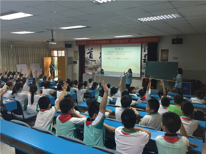 法社学院团总支法律宣传志愿服务队于5月10日下午,携手桥头镇社工,来到桥头镇桥头第二小学开展校园欺凌普法宣传活动。