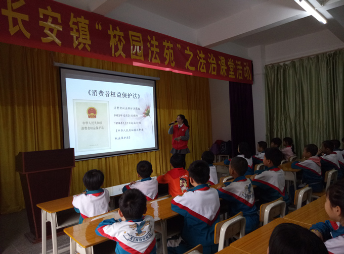 团总支法律宣传志愿服务队来到了长安镇信东小学,给同学们上了一节精彩的普法课。课堂的主题是“消费者权益保护法”。在课堂上同学们认真听讲,积极回答问题,课堂气氛活跃。