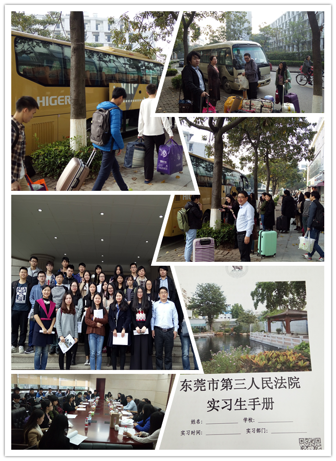2016年12月26日,法社学院法律系部分教师根据学院的实习工作分配安排,各自带领2013级法学专业毕业生和2015级法学卓越班分乘多辆大巴车将学生集中统一送至东莞市中级人民法院、市第一人民法院、市第二人民法院和市第三人民法院、广东众达律师事务所、东莞名道律师事务所等集中实习单位并与之进行交接。至此,法社学院2013级所有专业毕业生的集中实习工作和2015级法学卓越班寒假实习得以全部落实。