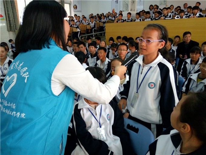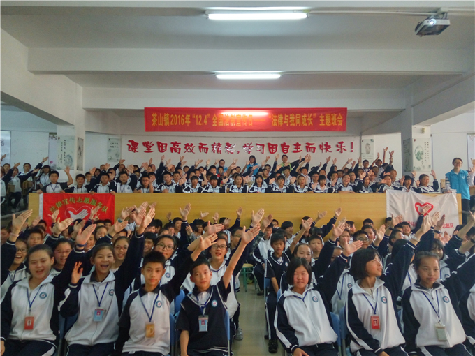 团总支法律宣传志愿服务队为紧密与茶山司法分局的合作和深入志愿普法活动,同茶山社区的工作人员及社区矫正人员来到茶山镇誉华学校,为初中部的学生进行法制教育主题班会的授课以及为小学部学生开展法治宣传普法游园活动。