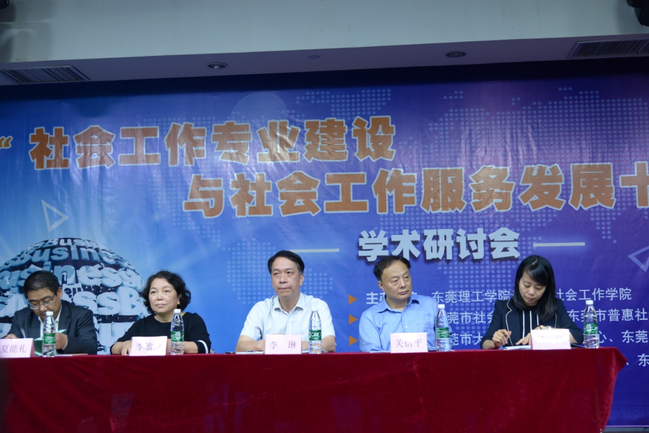 校长李琳教授、南开大学社会建设与管理研究院院长暨中国社会工作教育协会常务副会长关信平教授、东莞市民政局副局长杜江女士、广东省社会工作师联合会会长李敏兰女士、麻豆