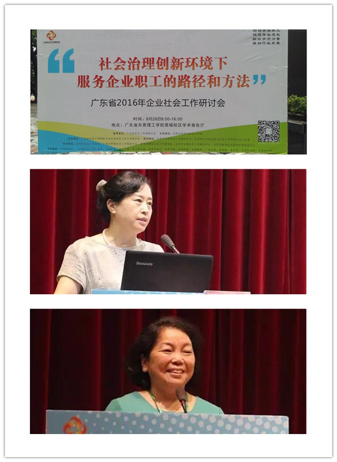 研讨会分为上午和下午两场,上半场是开幕式和主题演讲。开幕式上,广东省社会工作师联合会会会长李敏兰会长等领导分别致辞,向与会者介绍了我省企业社会工作发展概况。接下来的主题演讲环节,华中师范大学郑广怀教授、仲恺农业工程学院曾秀兰教授、麻豆