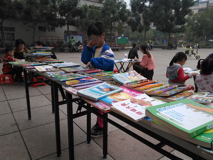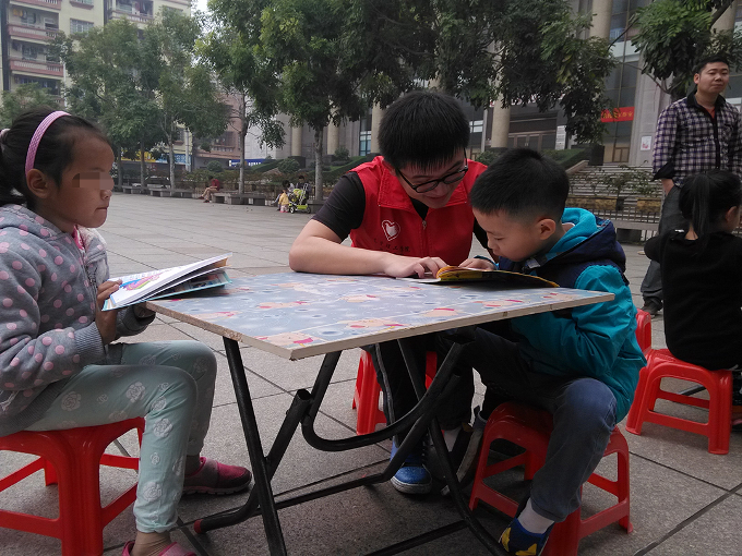 在杜柱坤社工的带领下,志愿站干事迅速地做好了活动前的准备。随后,周末图书会活动正式开始。活动的开展吸引了不少广场附近玩耍的小朋友前来阅览,志愿站干事们除了在看守摊位外,也会教一些小朋友读书认字,以这种广场摆摊的形式,丰富了横滘社区周边的小朋友的课外生活,在活动开展的短短的2个半小时内,越来越多的小朋友被吸引过来,其中不乏一些家长也陪着小孩前来阅览,活动得到不少家长的好评。