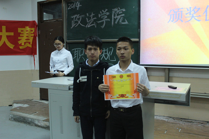 4月9日晚上7点30分,政法学院在莞城校区6#1课室举行了2014级新生职业规划大赛。出席本次大赛的评委有郭桦楷讲师、黄莹讲师、张达娜讲师、胡小彩讲师,嘉宾为政法学生会副主席吴丹丹。